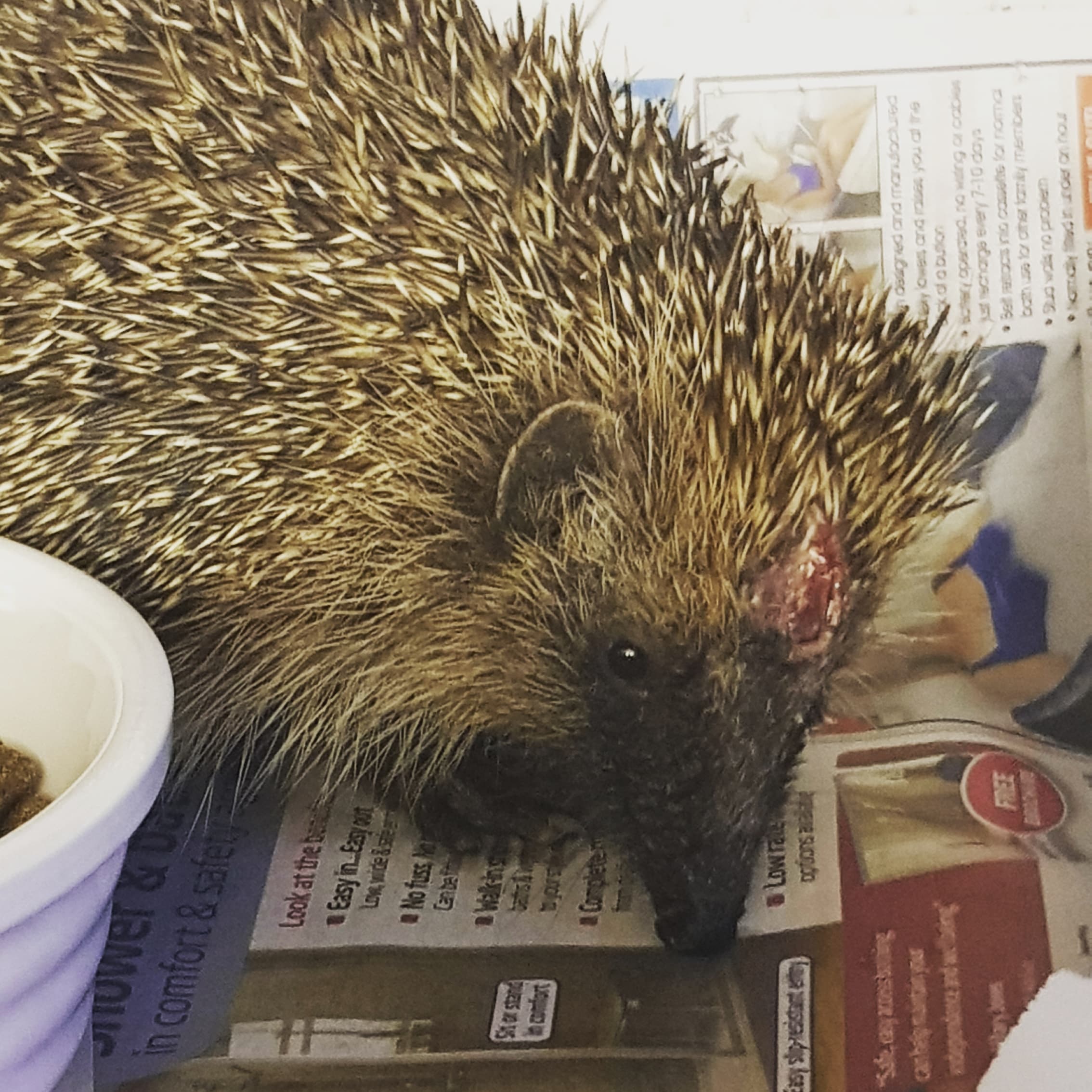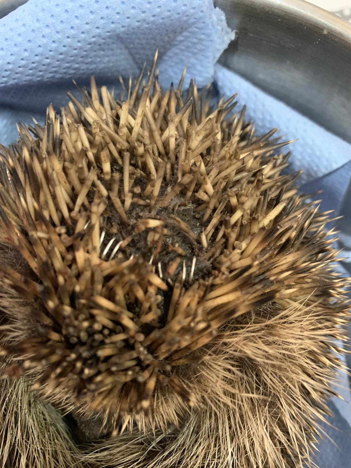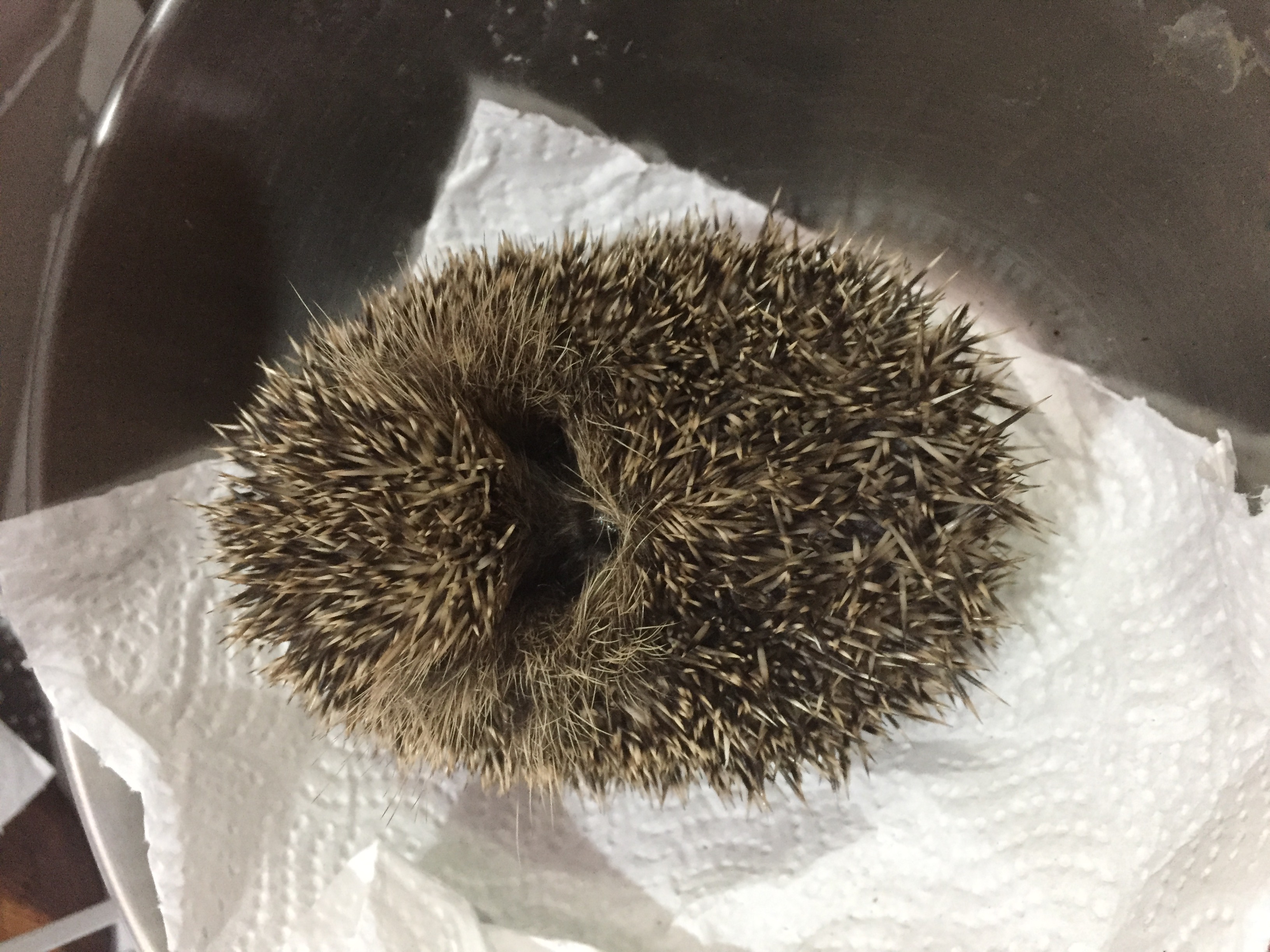 Little SpongeHog SpinePants came in last night after being found wondering out in the day . He is tiny and skinny but is eating with gusto . Hopefully ...