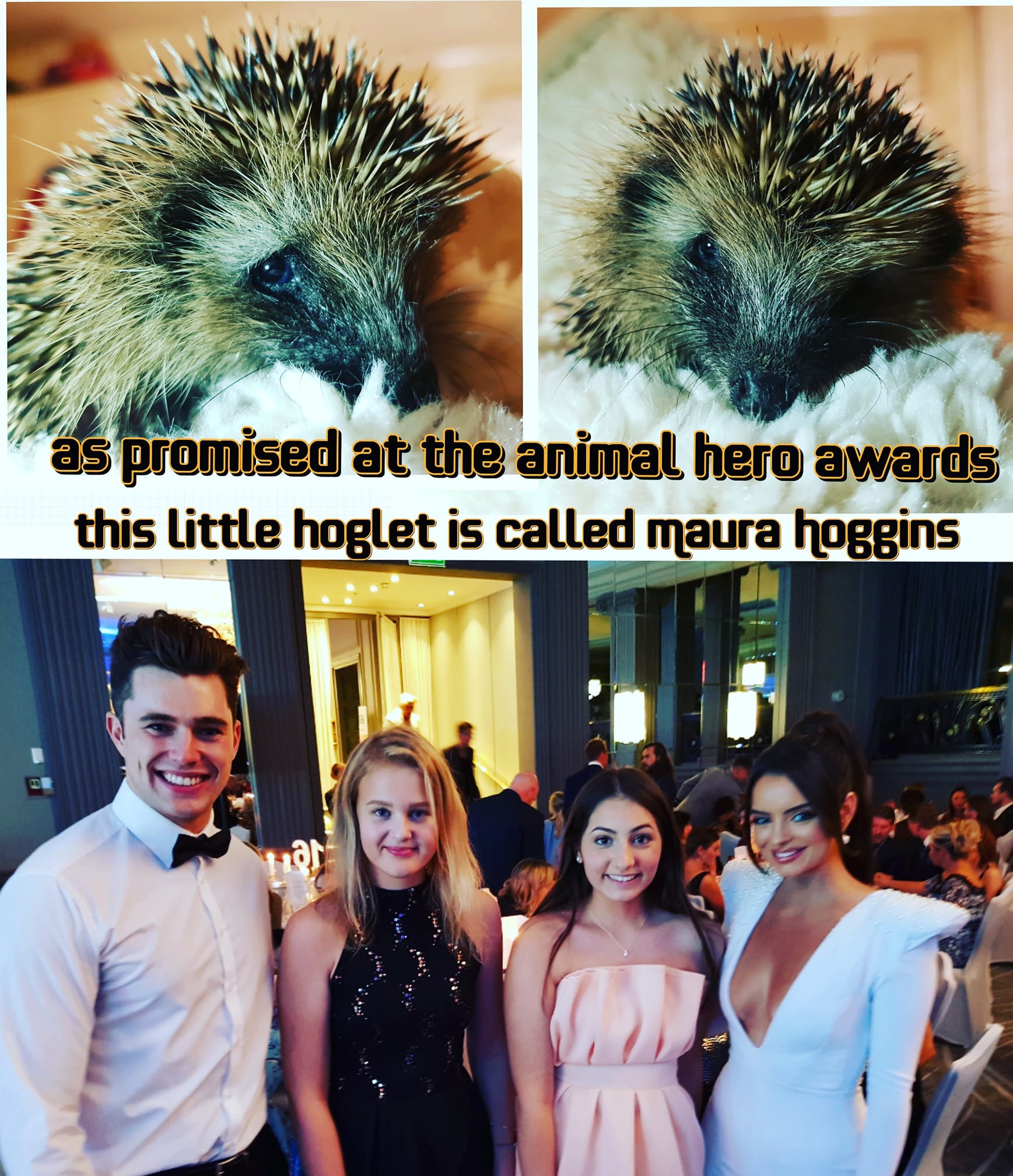 As @Maura Higgins handed us the award @animalheroawards she asked if we could name a hedgehog after her . This little girl came in on the day of the a ...